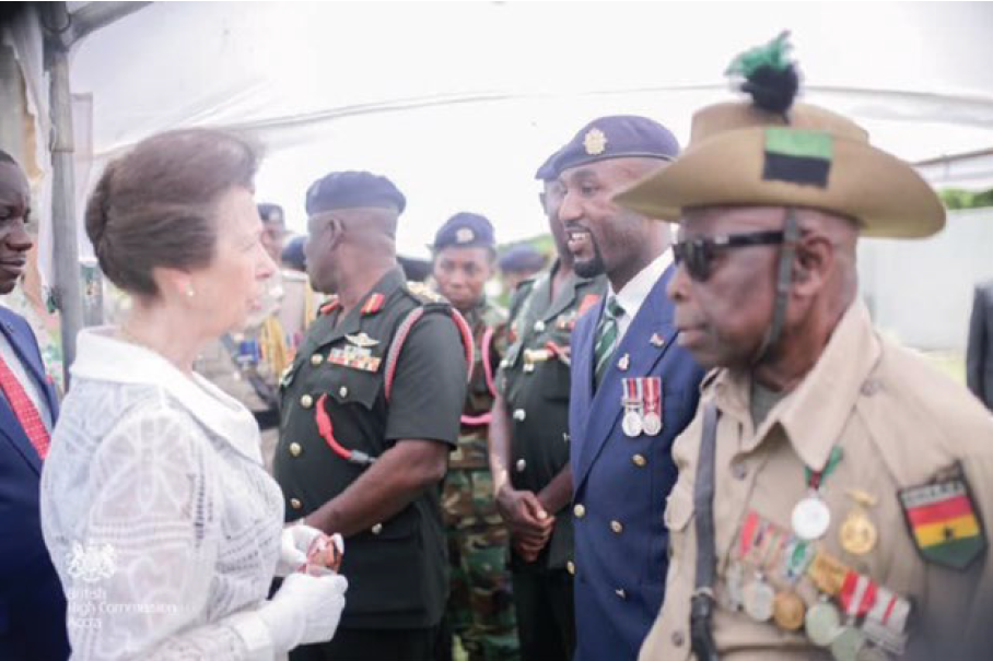 Derrick with some Army men and a Veteran Engaging with Princess Anne in 2018 The Big